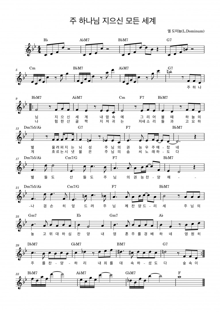[악보] 주 하나님 지으신 모든 세계 - L. Dominum (LoudateDominum 라우데테 도미늄: 하나님을 찬양하라)
